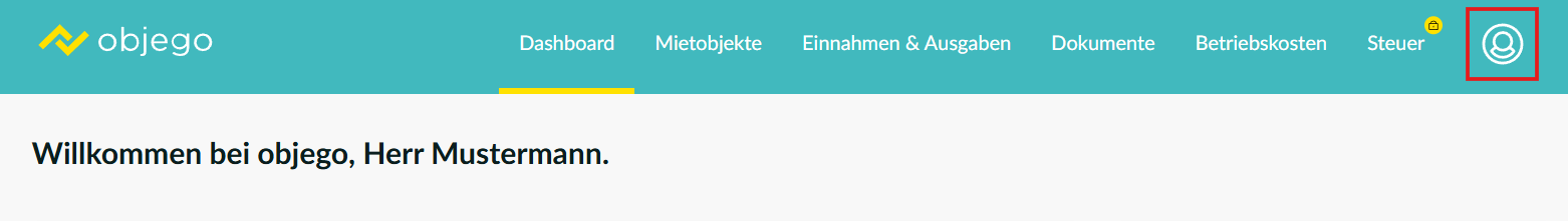 Melden Sie sich in Ihrem objego-Konto an und klicken Sie oben rechts auf das Benutzerprofil-Symbol.